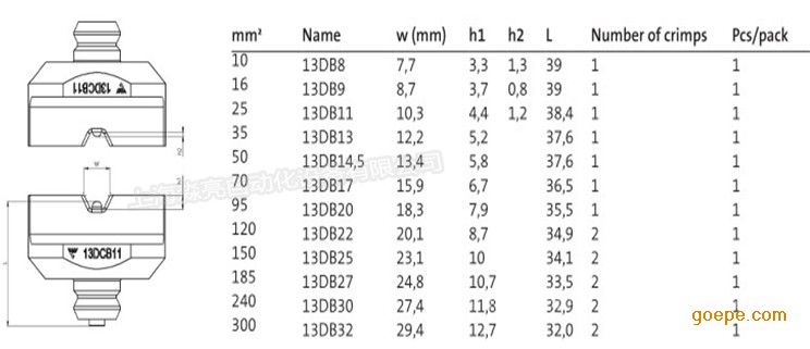 Crimp dies for DV1300 och PVX1300 Supplied in pairs.